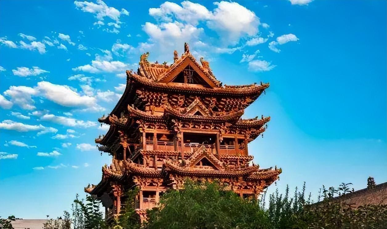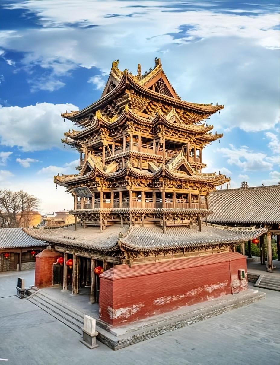 运城市万荣县飞云楼建于明代,距今近500年,属于东岳庙的附属建筑,是山西省现存最漂亮的古代楼阁之一。楼高3层共23米,为全木构建筑,与应县木塔并称为“南楼北塔”。