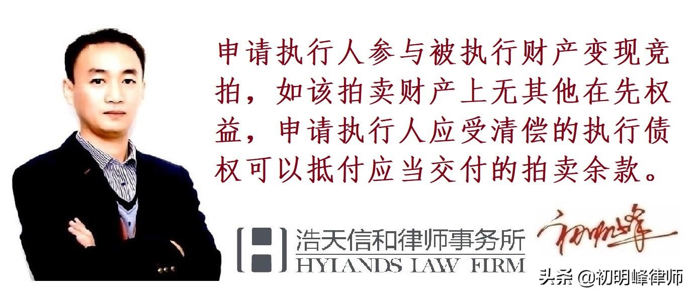 申请执行人参与被执行人财产变现竞拍,如其应受清偿债权金额高于竞得被执行人名下拍卖财产的成交金额,且被拍卖财产上无其他在先权益人的,可直接以申请执行人应受清偿的执行债权抵付应当交付的拍卖余款即可,无需再另行筹资交纳拍卖价款。