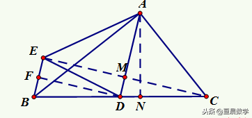 图中作AN的原因是要利用等腰三角形“腰高”相等。再利用三角形中位线得解法如下:
