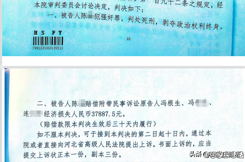 今年五月,陈某因涉嫌强奸罪,故意杀人罪被衡水市法院一审判处死刑,至于范某和萍萍均需另案处理。之后,陈某提起了上诉。
