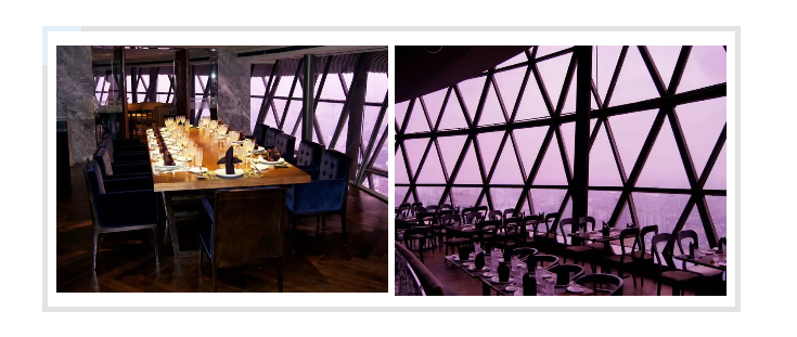 东方明珠空中旋转餐厅坐落于上海东方明珠广播电视塔267米的球体上,是亚洲最高的旋转餐厅,营业面积为1500平方米,可同时容纳350位来宾用餐。每2小时旋转一圈的设计,宽敞明亮的落地球体玻璃窗,浦江美景一览无余。