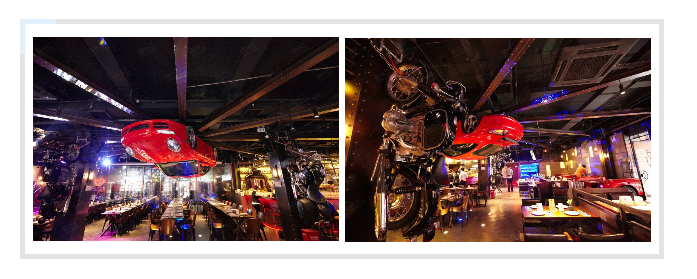 1886汽车主题德国餐厅(外滩13号店)位于外滩商圈,主打音乐餐厅、酒吧,集德式美食、汽车主题、自酿啤酒、Live House等元素于一体。餐厅总面积三百多平米,采用复古工业的装修风格,内有各种仿真车模以及化身“活时钟”的倒挂保时捷等。