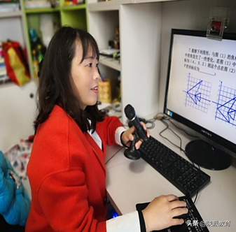 特殊时期学生没有纸质课本,电子课本使用极不方便。从拍照到扫描再到录视频,李老师发动家人,墙壁桌子是影视城,家里物品是道具,女儿是导演,老公是摄像,她当主演。技术一天天高超,课堂越来越清晰,越来越人性化。她和家人一起想尽各种方式带学生动手“玩”数学。在每一个视频片断中让学生明白数学的进步都是数学家动手画一画,量一量,做一做,证一证反复“玩”出来的。这些别出心裁的妙招,让学生真正走进网课,爱上数学。