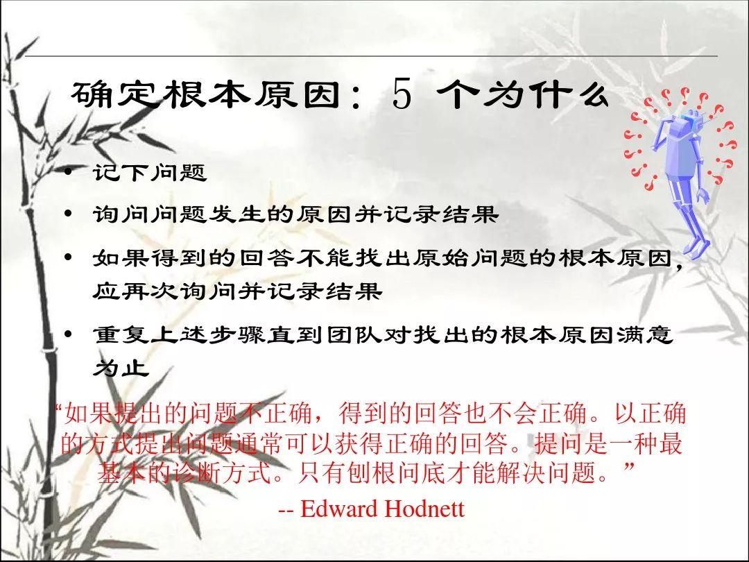 第三步,分析错误原因。对已经存在的人为错误进行分析,找出错误原因所在,以及这些错误可能造成的后果进行预测分析。确定根本原因是对应用防错技术以消除缺陷至关重要的。找出缺陷发生的源头,用质量管理七工具和5Why方法找出根本原因。