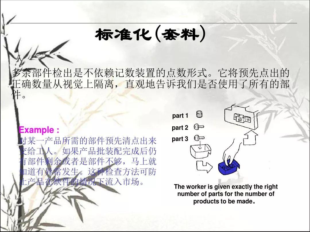 第八步,标准化和推广。对防错过程进行评审,前面的过程和结果进行总结,建立防错案例数据库,探讨方案能否复制、推广其他类似产品,特别要注意标准化,它包括:(更多资讯,请关注公众号:百家管理)