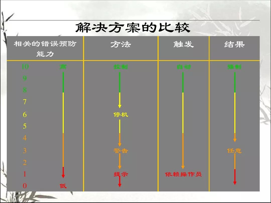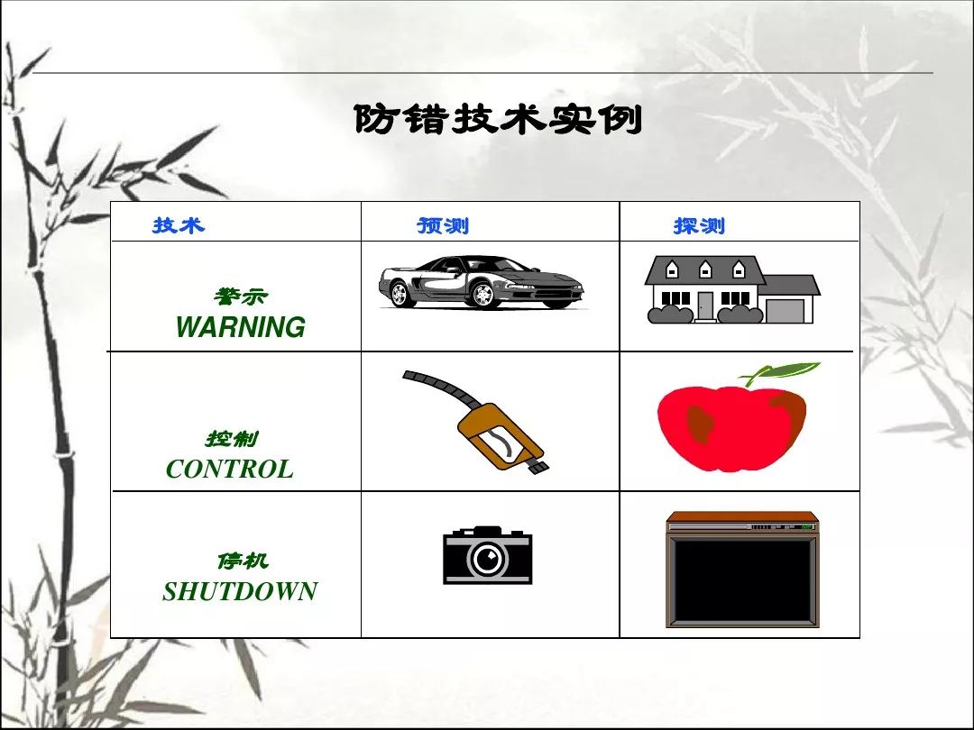 防错技术的理想状态是不制造缺陷的防错,这是最主动、最经济、可预见并防止错误的控制技术。