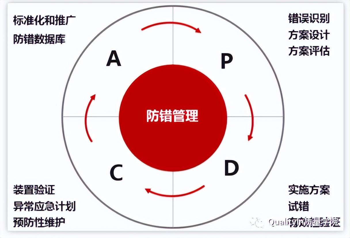 防错管理,是由防错设计、防错的实施、防错验证和防错经验教训的沉淀四个环节,共同组成的“P-D-C-A”闭环过程。