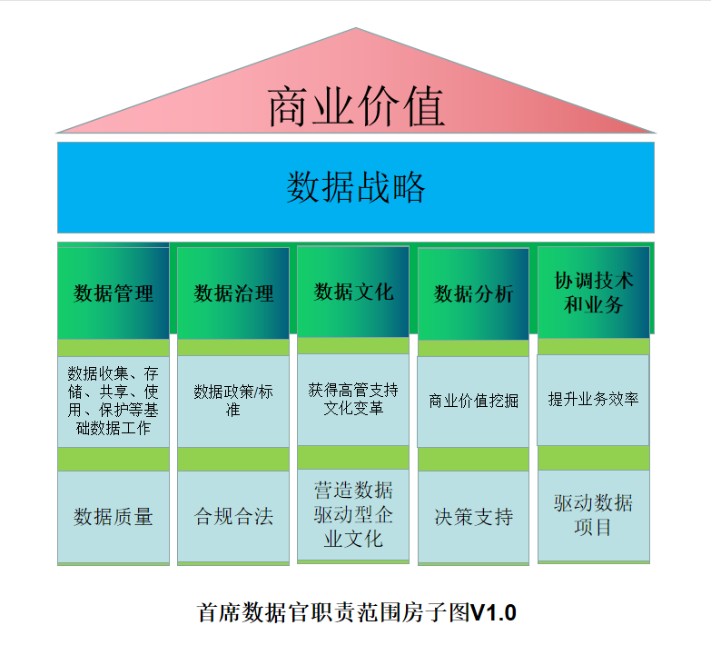 借助战略解码和波特价值链,综合上述调研,本文提出首席数据官职能范围房子图。
