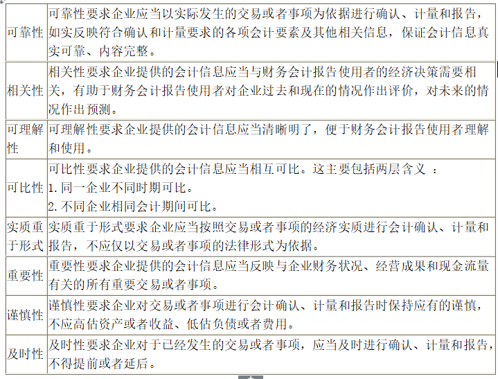 会计信息质量要求是对企业财务报告所提供会计信息质量的基本要求,是使财务报告所提供会计信息对投资者等信息使用者决策有用应具备的基本特征。