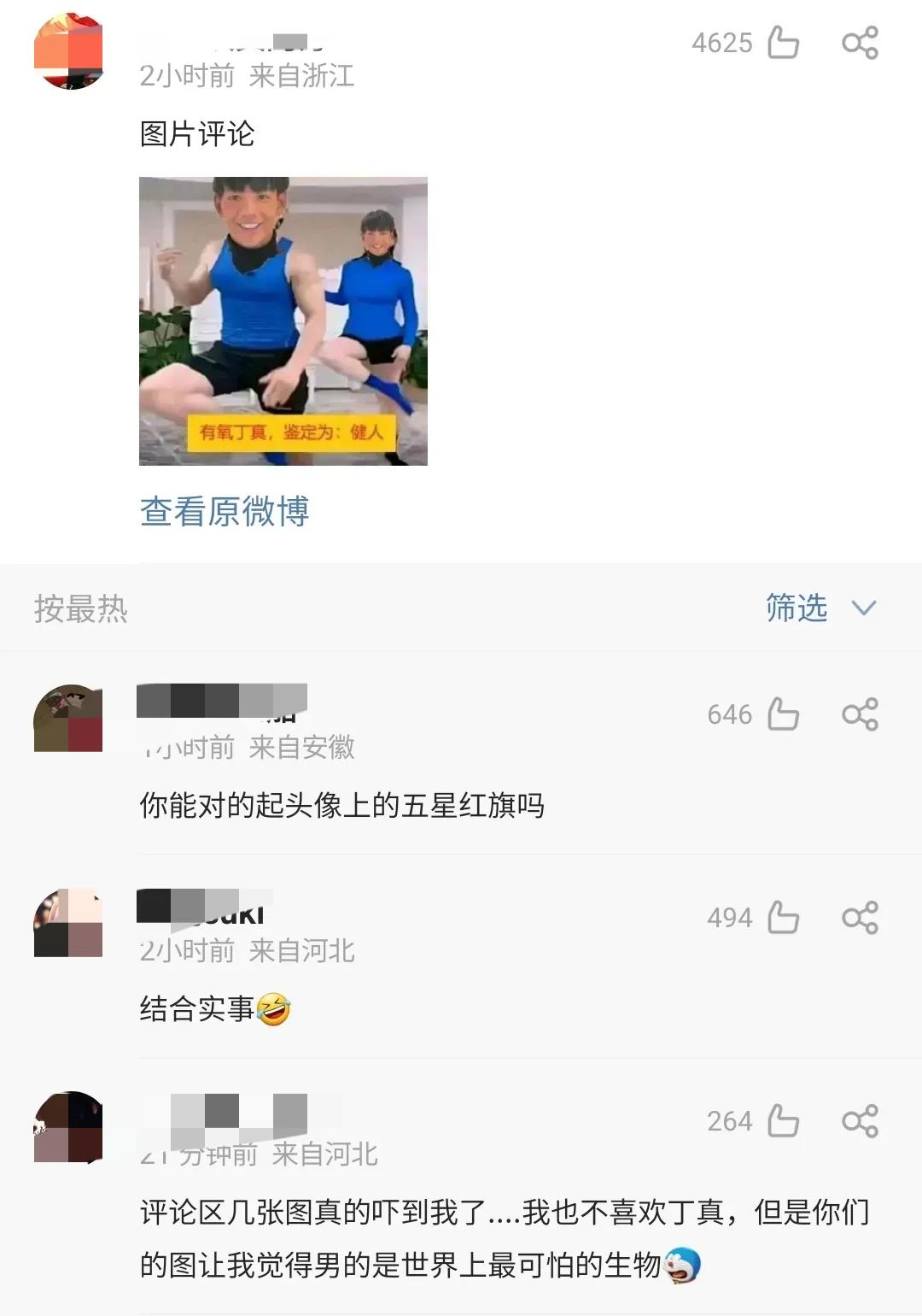 但没想到,没过几个小时,工作室这条微博评论里,依然出现了大量对丁真的恶意拼图,甚至更加嚣张,这些恶意P图被网友顶成了高赞。