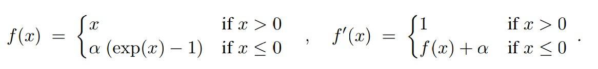 ELUs是对ReLU激活函数的一种演变,将激活函数更能够保持一个noise-robust状态。所以提出一个具有负值的激活函数,这可以使得平均激活接近于零,但它会以更小的参数饱和为负值的激活函数ELUs。ELUs激活函数的公式The exponential linear unit (ELU) with 0 <α如下展示