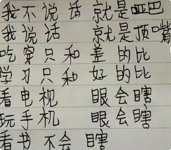 此外,他要是“安静如鸡”打定主意不跟爸妈说话,会被吐槽是“哑巴”,可要是说话不合家长的心意,就会被判定为“顶嘴”。这样看来,现在当个小学生似乎比上班还难。