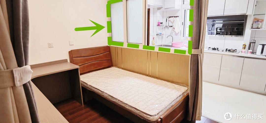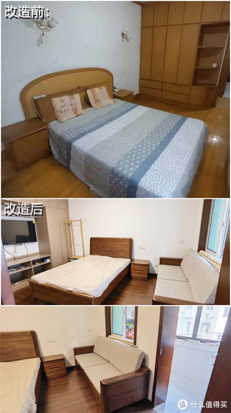 原先这是一堵实墙,还打上了橱柜,完全没有采光。我们把橱柜拆除,墙上开了窗,整个主卧都亮堂起来啦!