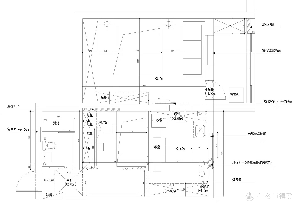 施工图我请会CAD的朋友对照着手稿简单搞了一下,装修师傅能看懂就行的程度。