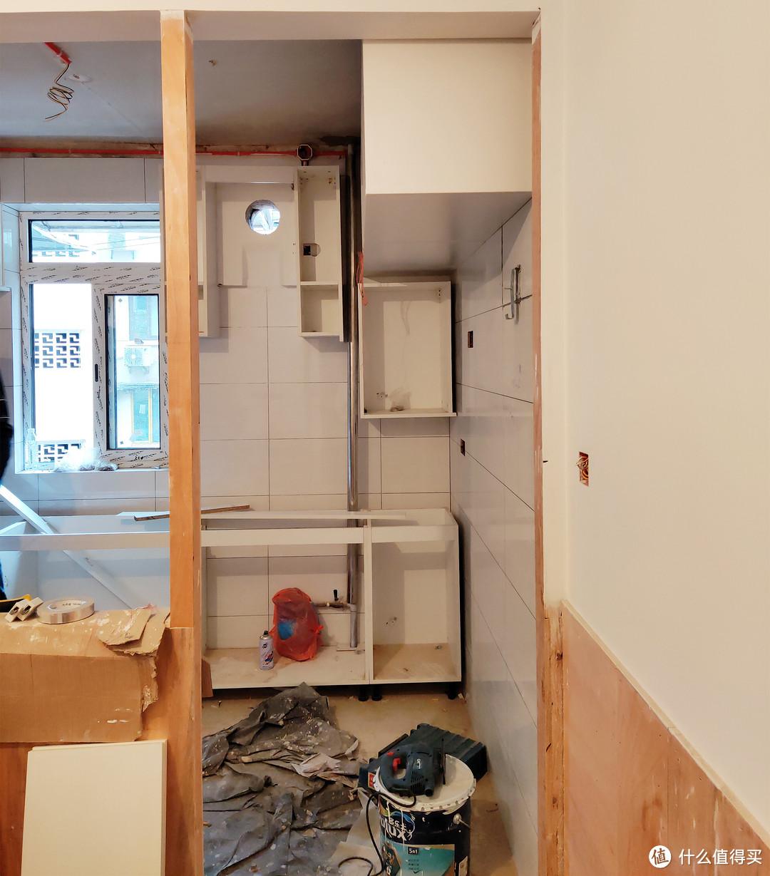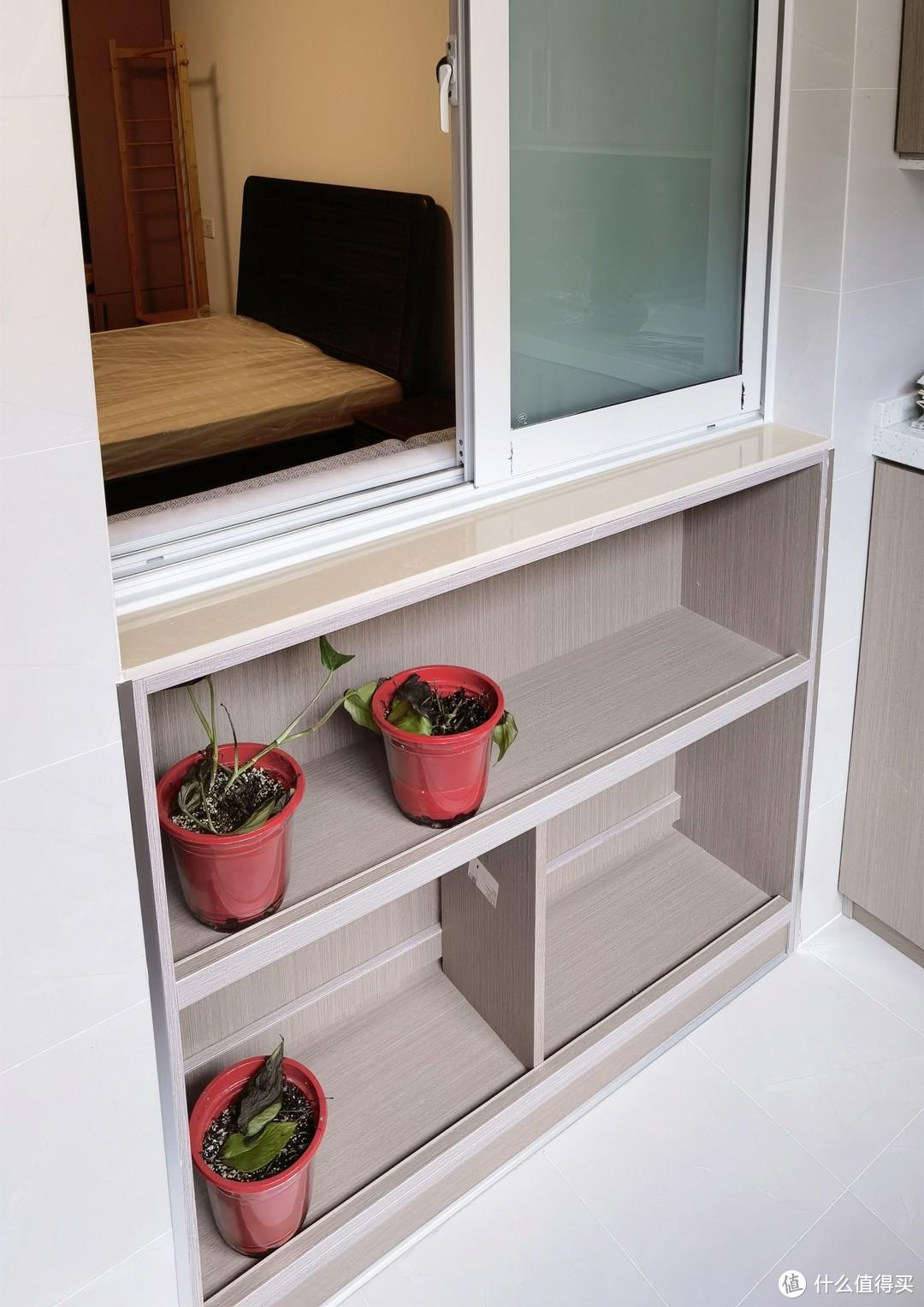 我们绞尽脑汁增加储物空间,决定把窗拆除填实,又加砌了侧墙,这才有地方打出下面这个橱柜来。