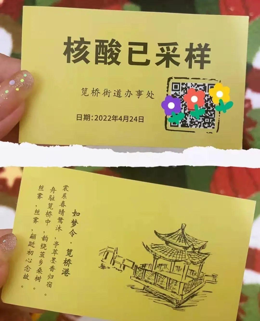 上城区九堡街道的核酸证明,走的是复古民俗风,不过整体效果看上去有一种关进去被放出来的感觉!有网友说这是“良民证”,光看字面意思好像也没毛病
