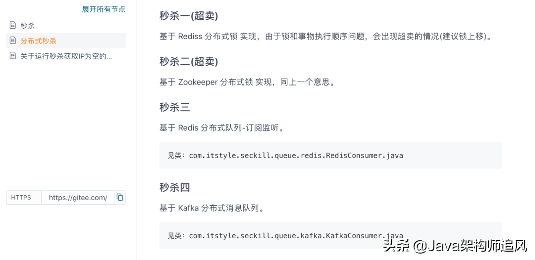 这个项目与其说是一个开源项目,倒不如说是一些具体秒杀问题里面的案例集合。