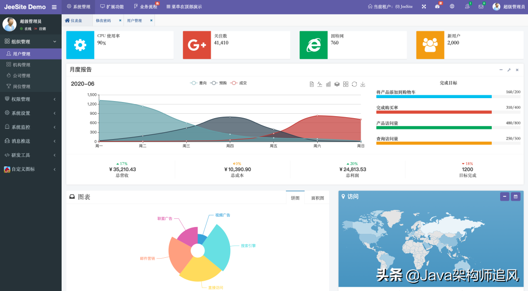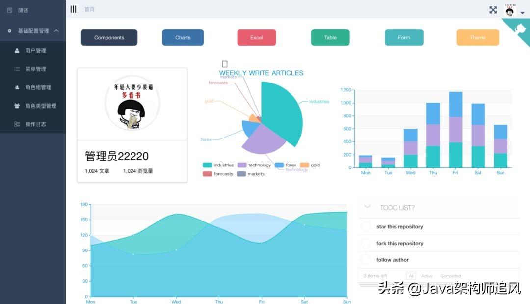 而且它作为一个典型的后台管理系统,要素基本都有,包括:组织机构、角色用户、权限授权、数据权限、内容管理、工作流等。