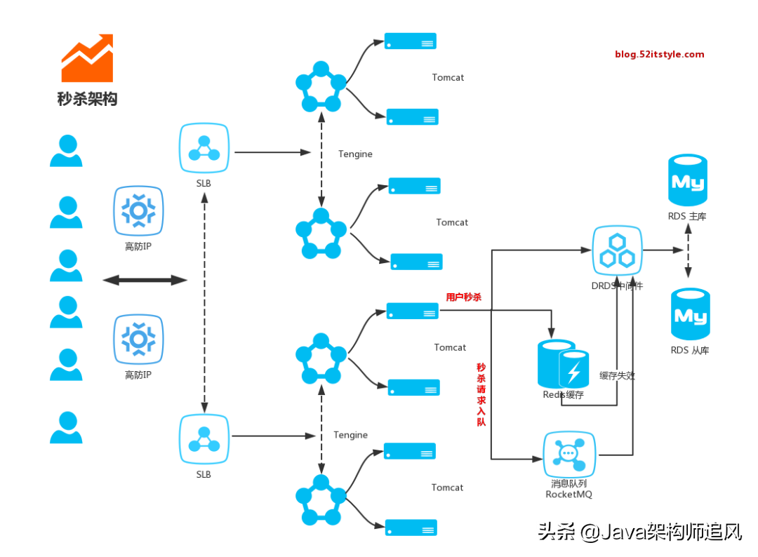 秒杀系统基本设计思想无非也就是:限流、缓存、异步、分摊、主备,其实某一程度上来说就是开源+节流的思想。