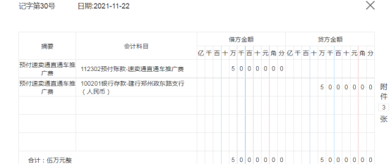 11月22日,销售部填写付款申请书申请预付速卖通直通车推广费50000元,财务部审核同意后出纳网银支付。