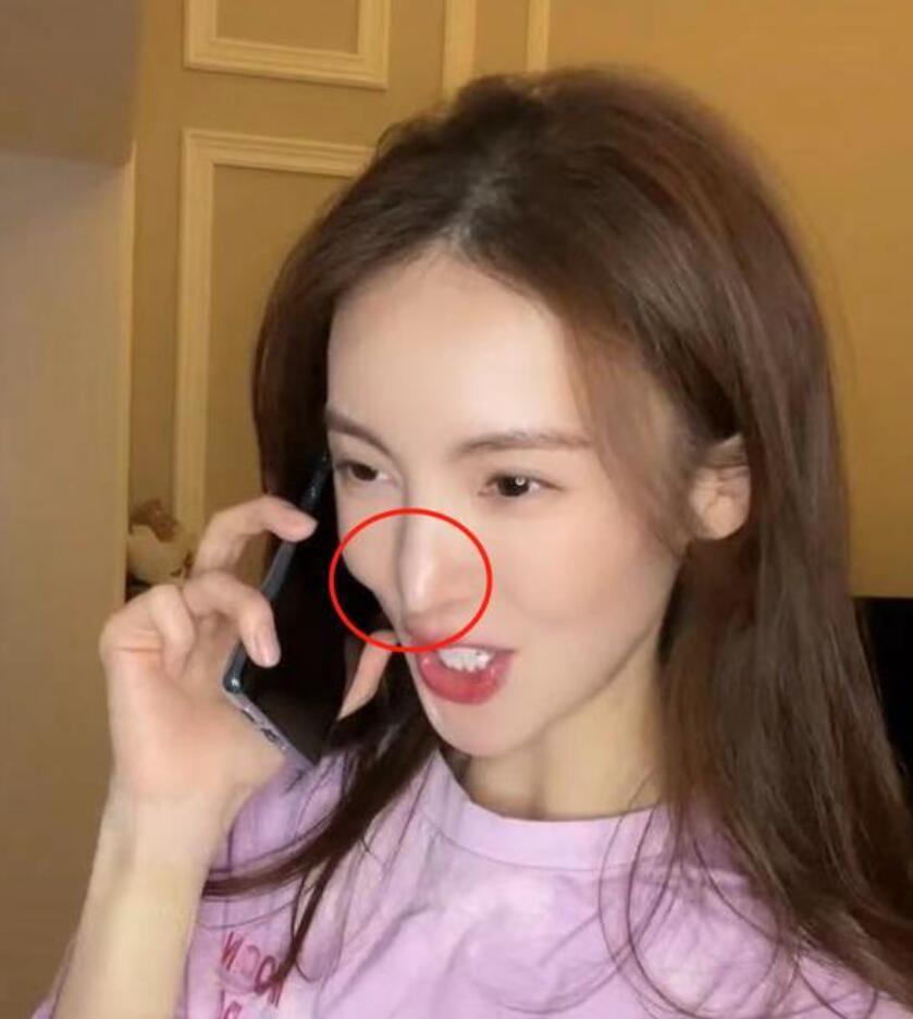 本来日常生活看着美到基本没有瑕疵的她,在镜头里却暴露了鼻孔外露的小问题。