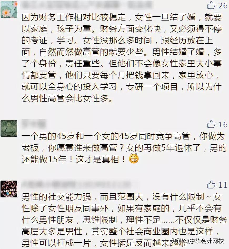 按照基数来算,这么多的女会计,只要能够坚持下来,她们做到财务高层的概率就要更高。至于前面说的思维能力和工作压力等,这些其实并不完全是性别决定的,很多优秀的女会计一样可以做到领导级别的位置。