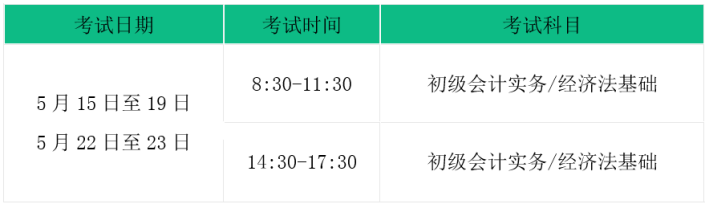 2021年初级会计职称考试于2021年5月15日至19日,5月22日至23日,分两个时间段进行。具体安排如下: