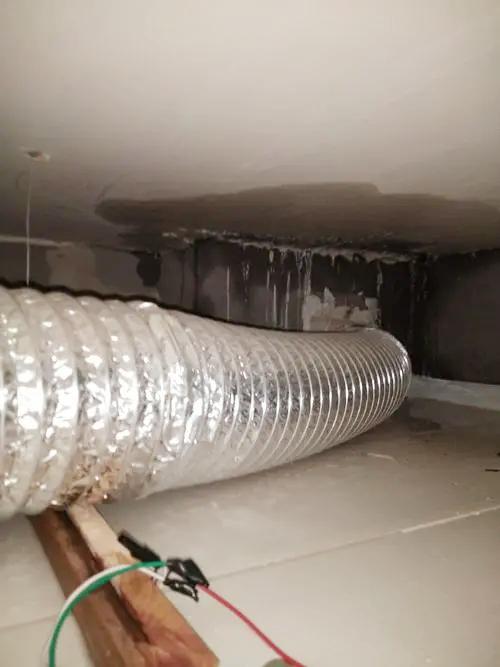 其次是安装止回阀以后,在止回阀上接好烟道软管。卫生间里的排气扇和厨房里的油烟机不一样,前者设备里并没有自带烟道软管。就算带了,由于排风扇与烟道之间的距离比较长,安装起来也很困难。