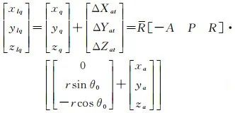 船体坐标系下水深点坐标(xq, yq, zq)可以换算到当地水平坐标系下的坐标(xlq, ylq, zlq),表示为