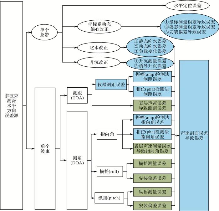 图 3 多波束测深水平方向误差源分类及改进Fig. 3 Classification and improvement of horizontal error sources in MBES