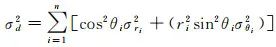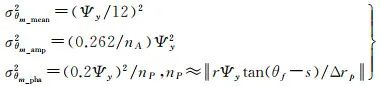 式中,σθm为波束指向角测量误差,根据检测方式不同求出,考虑到实际测量时,存在记录不完全的情况,以代表性测角误差σθm_means计算[7-16]
