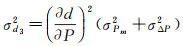 (3) 纵摇角误差。σpm、σΔP表示运动传感器的纵摇角P测量误差和稳定性试验的未校准误差(安装偏差误差), 则纵摇角误差对测深误差的贡献量σd3为