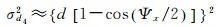(4) 波束角误差。Ψx表示发射波束开角的大小,波束角误差对测深误差的贡献量σd4表示为