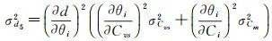 根据误差传播定律,可由(4)式得到水深的累计误差σd,表示为