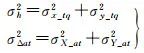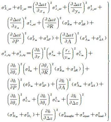 式中,以σ0表示定位设备自身误差;σX_at、σY_at和σx_tq、σy_tq分别表示动态偏心改正和船体坐标系下水平位置归算误差。各误差分量表示如式(20)所示