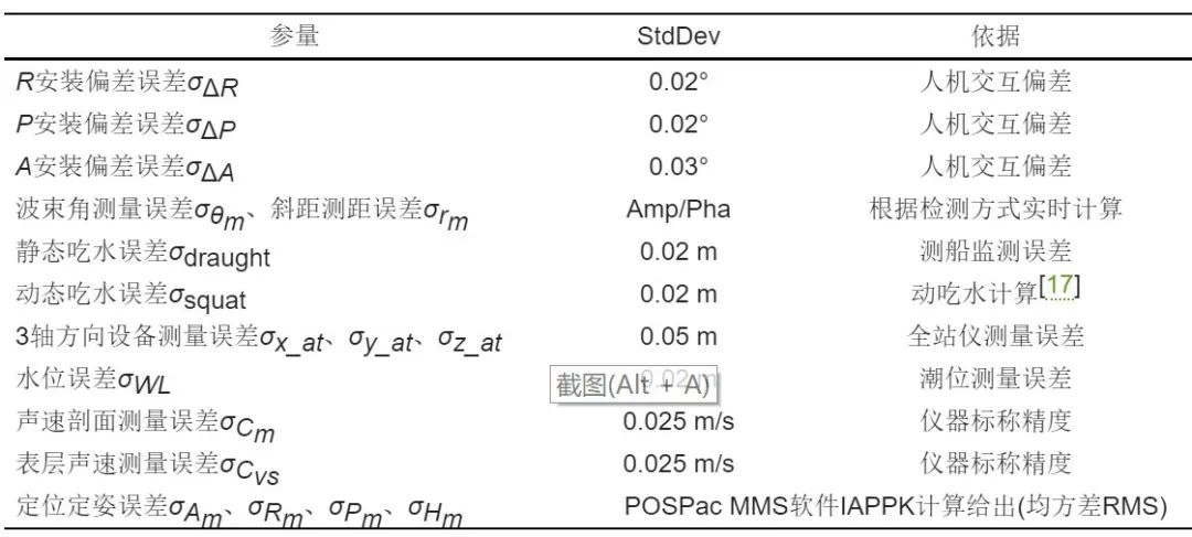 表 1 多波束测深系统主要误差源参数Tab. 1MBES main error source parameters