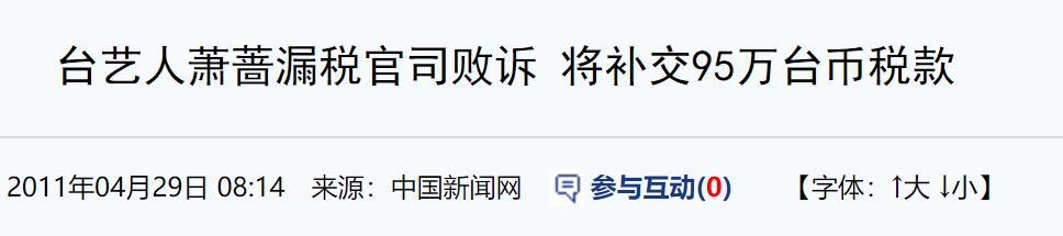 2011年,漏税官司败诉,被台湾税务部门追缴2003年的个人所得税,最后补税95万台币税款。