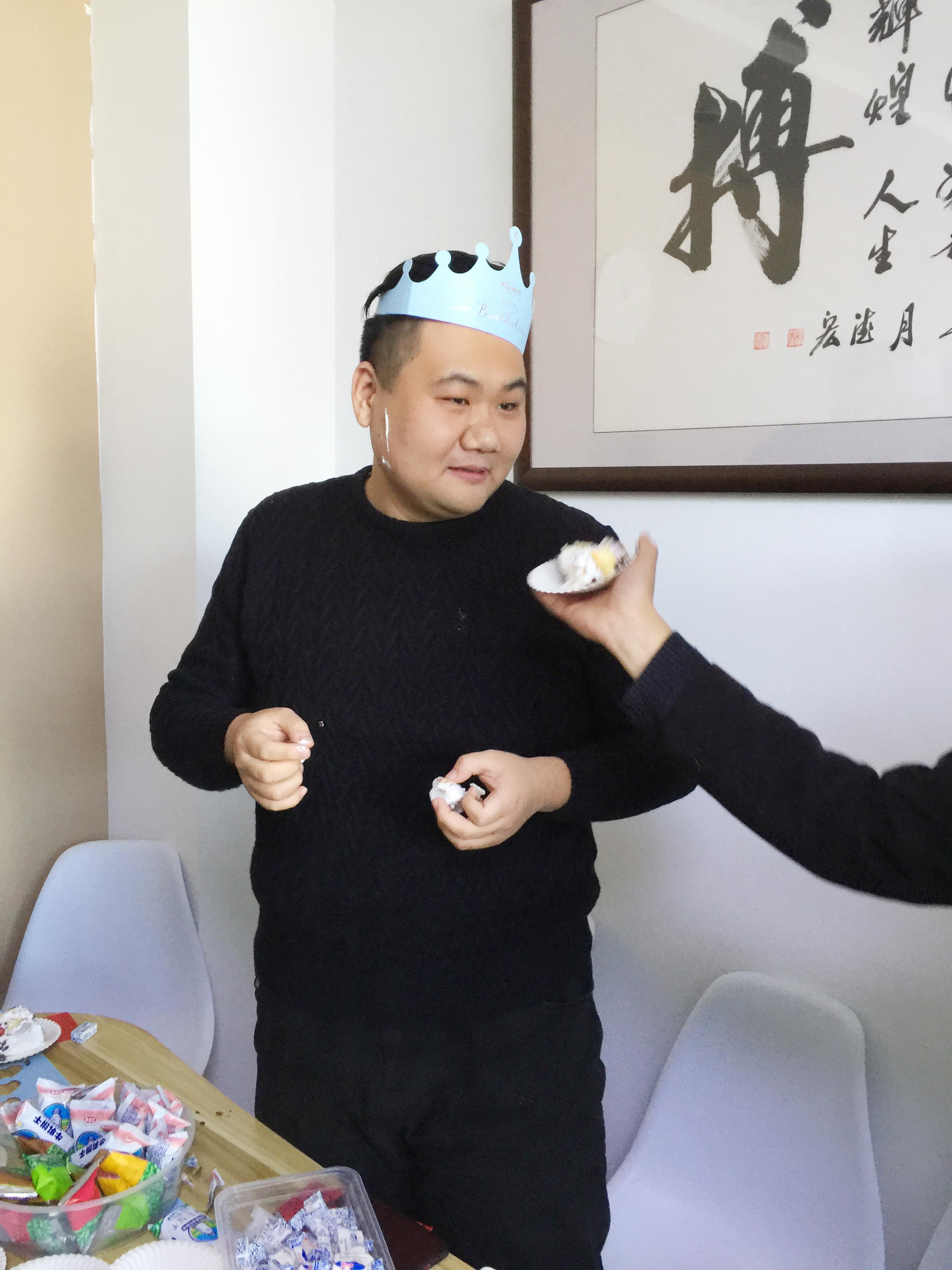 被同事调皮的抹了一脸蛋糕
