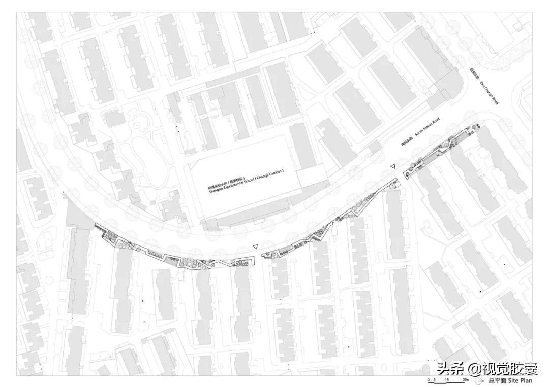 从这一角度而言,苏州园林可以为这一项目提供借鉴。沧浪亭面对葑溪的城市界面,由于采用复廊围墙,而显得灵动,富有生气;拙政园东院的波形廊上下起伏,自身就成为了一道亮丽的风景特写......该项目中,作为城市边界的昌五社区围墙,同样有机会成为一处富有生活气息的线型园林。它将使其所处的6至8米宽窄不等的空隙地带,由小区的边缘转变为社区的中心花园。