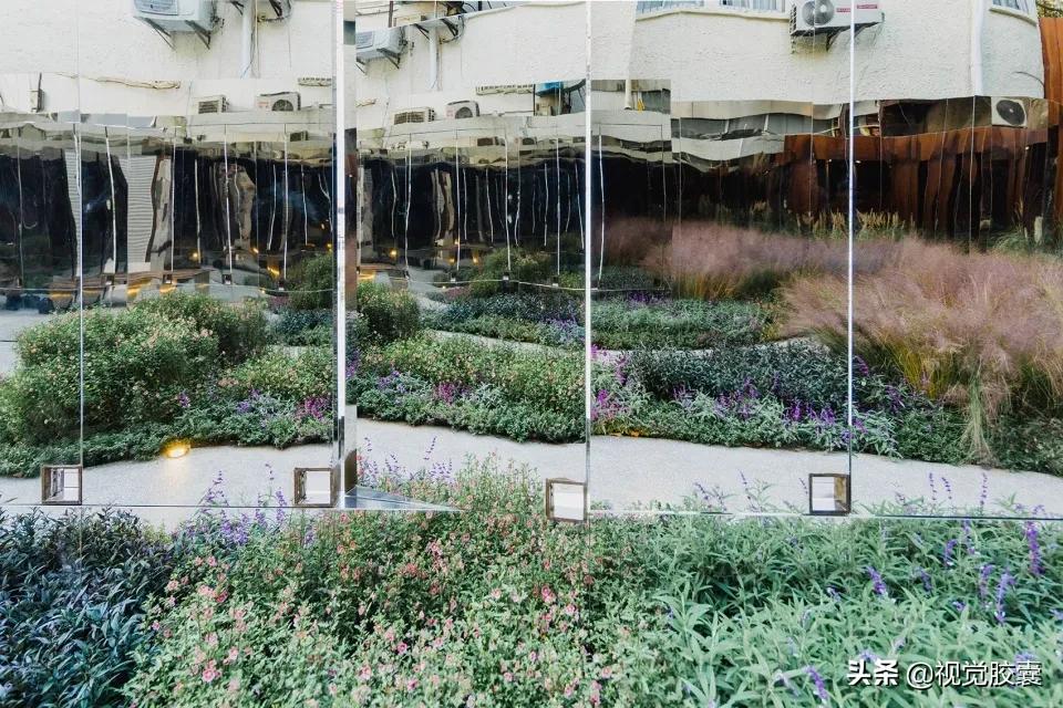 同时,两侧的镜面就像一个荧幕,她的反射记录着植物一年四季随时间的不停变化,不同的人在这里与镜面,植物的互动,呈现一道时间性的风景。