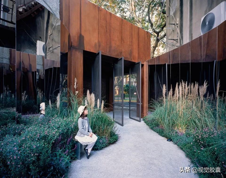 第二件事是设置一个由耐候钢形成的入口,这里布置了一个关于新华路历史建筑的永久展,我们认为整个新华路应该被看成一个鲜活的博物馆,而这里将成为介绍新华路上众多珍贵历史建筑的小序厅。所以,具有厚重感的耐候钢是对历史的回应,同时谦卑自然的介入城市街道界面。