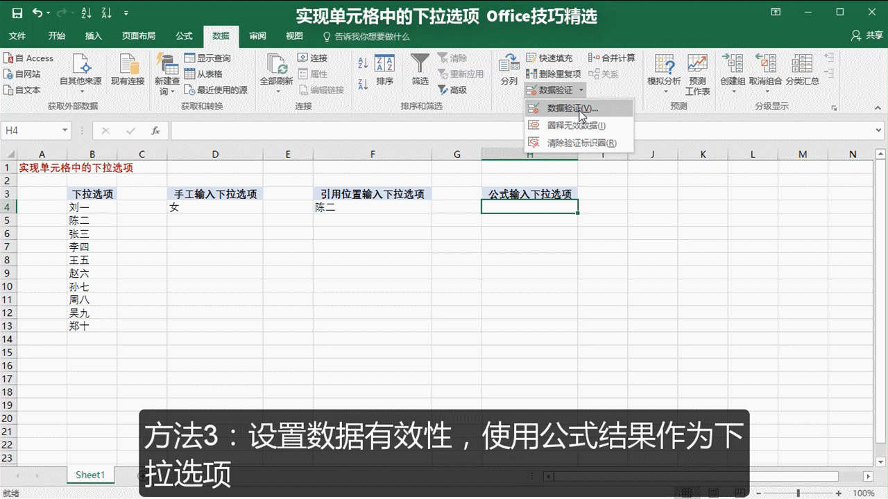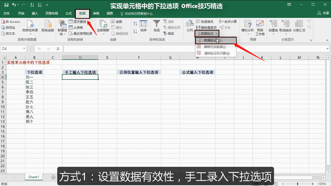 3.实现单元格中的下拉选项