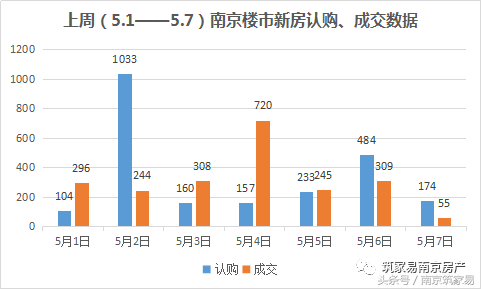 据南京市网上房地产数据显示,截至5月7日20:30,南京楼市上周(5.1-5.7)共认购商品住宅1917套,成交2404套(不含溧水、高淳和都市圈),日均认购近274套、成交343套,与前一周(4.17-4.23,认购3415套、成交694)相比,认购量下跌超4成,成交量翻了3倍。