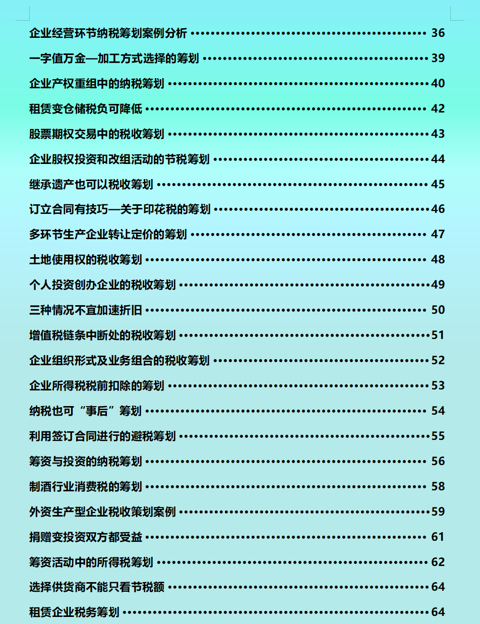 篇幅有限,税务筹划案例汇总就不一一展示了,
