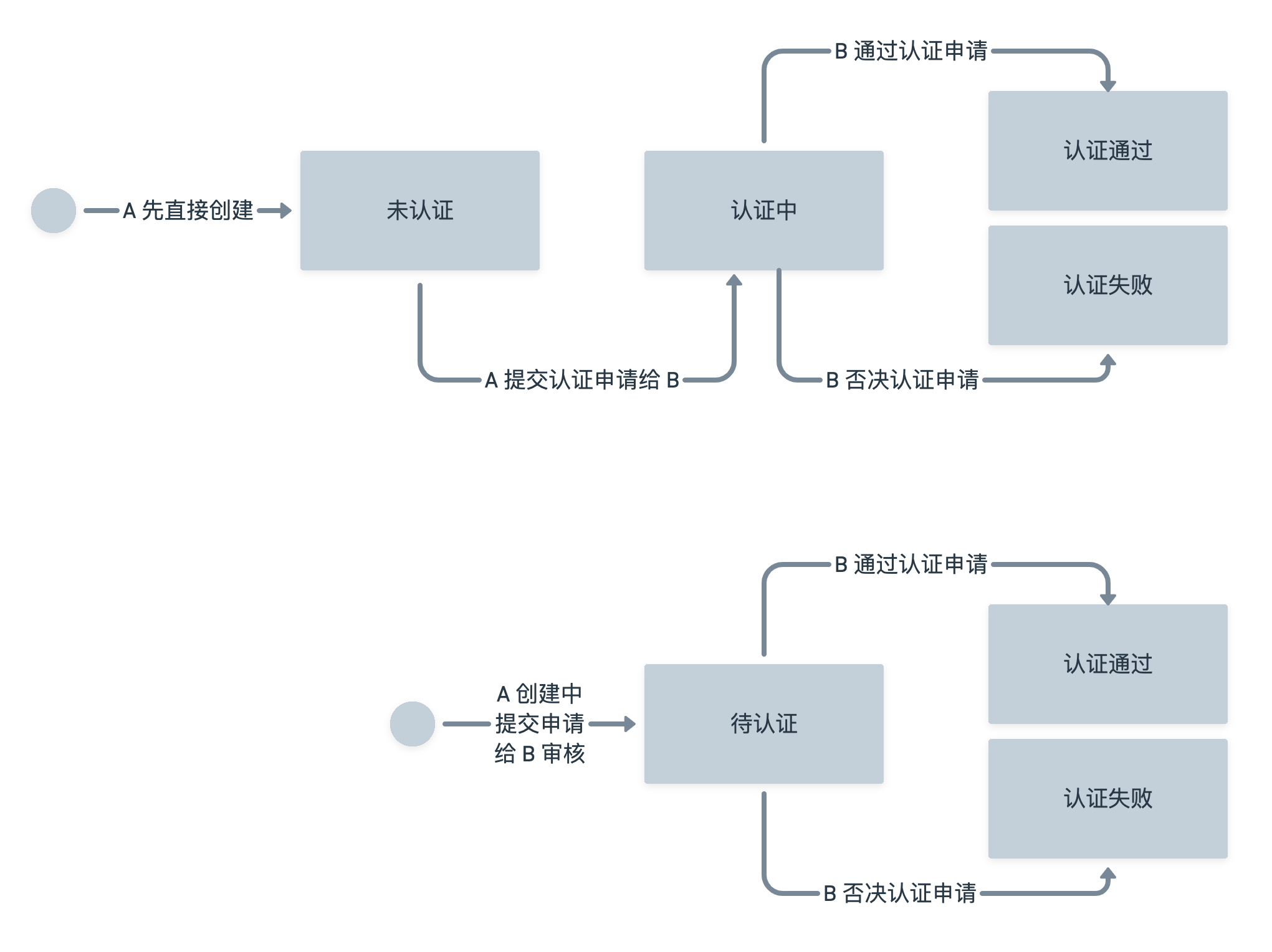 在流程完成之前的中间过程中,告知用户下一步待执行的操作,比上一步刚刚完成哪个更重要;在角色多、极易混淆的情况下建议在状态名上增加角色名;同一阶段时,不建议区分不同用户角色看到的状态名,可以给他们不同的反馈或提醒。专业工具或平台中,如果有行业约定俗成的术语来命名状态,则遵照行业规则。3. 关系