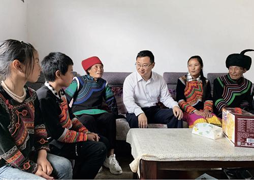 佛山驻凉山州昭觉县工作组组长,昭觉县委常委、副县长徐航在联系的贫困户阿布扯久日家慰问。