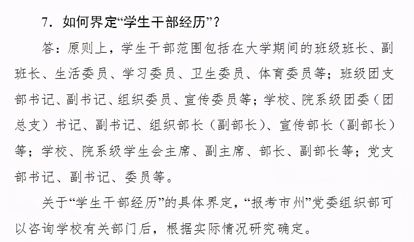 那么,普通的学生干部又包括哪些呢?广东历年公告对这些没有说明,小编就借用一下2021湖北选调生的政策解答文件来给大家科普一下: