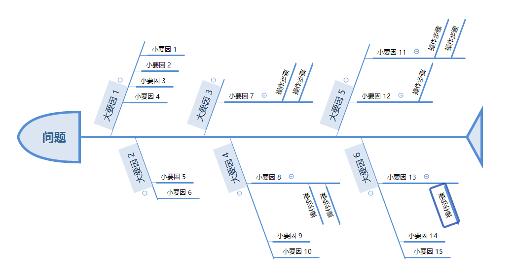 这个很重要,鱼骨图一次只能用来解决一个问题,明确一个要解决的目标,贪多嚼不烂。