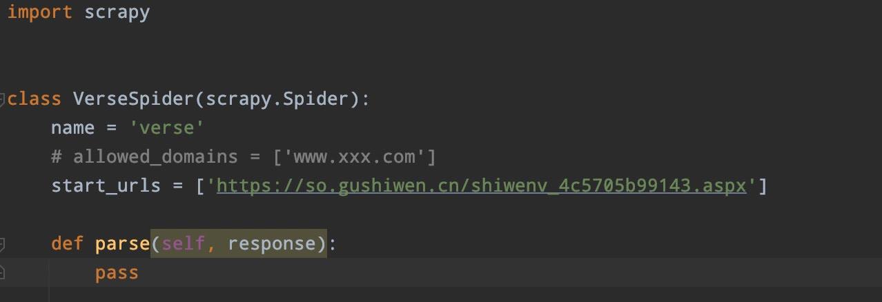 打开爬虫文件’verse‘,更改需要爬取的网页地址