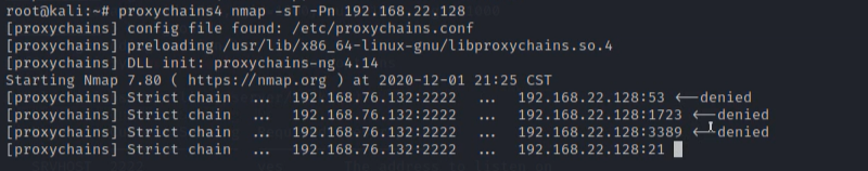 配置proxychains后,nmap借助proxychains代理服务器探针target2,这里需要重点掌握到底是如何进行攻击的。